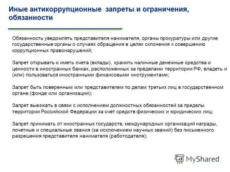 ПРОТИВОДЕЙСТВИЕ КОРРУПЦИИ25 декабря 2008 года Президентом РФ Д.А. Медведевым подписан принятый Государственной Думой и одобренный Советом Федерации Федеральный закон «О противодействии коррупции» № 273-ФЗ. Федеральный закон конкретизировал понятие коррупции как злоупотребление служебным положением, дачу взятки, получение взятки, злоупотребление полномочиями, коммерческий подкуп либо иное незаконное использование физическим лицом своего должностного положения вопреки законным интересам общества и государства в целях получения выгоды в виде денег, ценностей, иного имущества или услуг имущественного характера, иных имущественных прав для себя и для третьих лиц либо незаконное предоставление такой выгоды указанному лицу другими физическими лицами. Закон определил правовую, организационную основу и основные принципы противодействия коррупции, а также основные направления деятельности государственных органов по повышению эффективности противодействия коррупции.