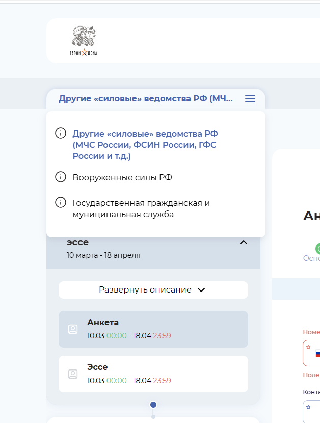Чтобы пройти опрос, перейдите по ссылке: https://pos.gosuslugi.ru/lkp/polls/503860 ![]() ИНСТРУКЦИЯ по порядку участия в проекте «Герои Дона»Опубликовано: 17-03-2025 12:001. Требования к кандидатам для участия в проекте «Герои Дона»