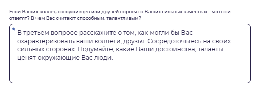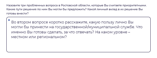 Эссе – это совокупность ответов на следующие вопросы: ![]() ![]() ![]() Ответ на каждый вопрос должен быть структурирован и соответствовать заявленному объему: от 300 до 600 символов (без пробелов). Ответы на вопросы должны быть аргументированы, между абзацами должны содержаться логические переходы. Текст эссе не может содержать ненормативной лексики, призывов