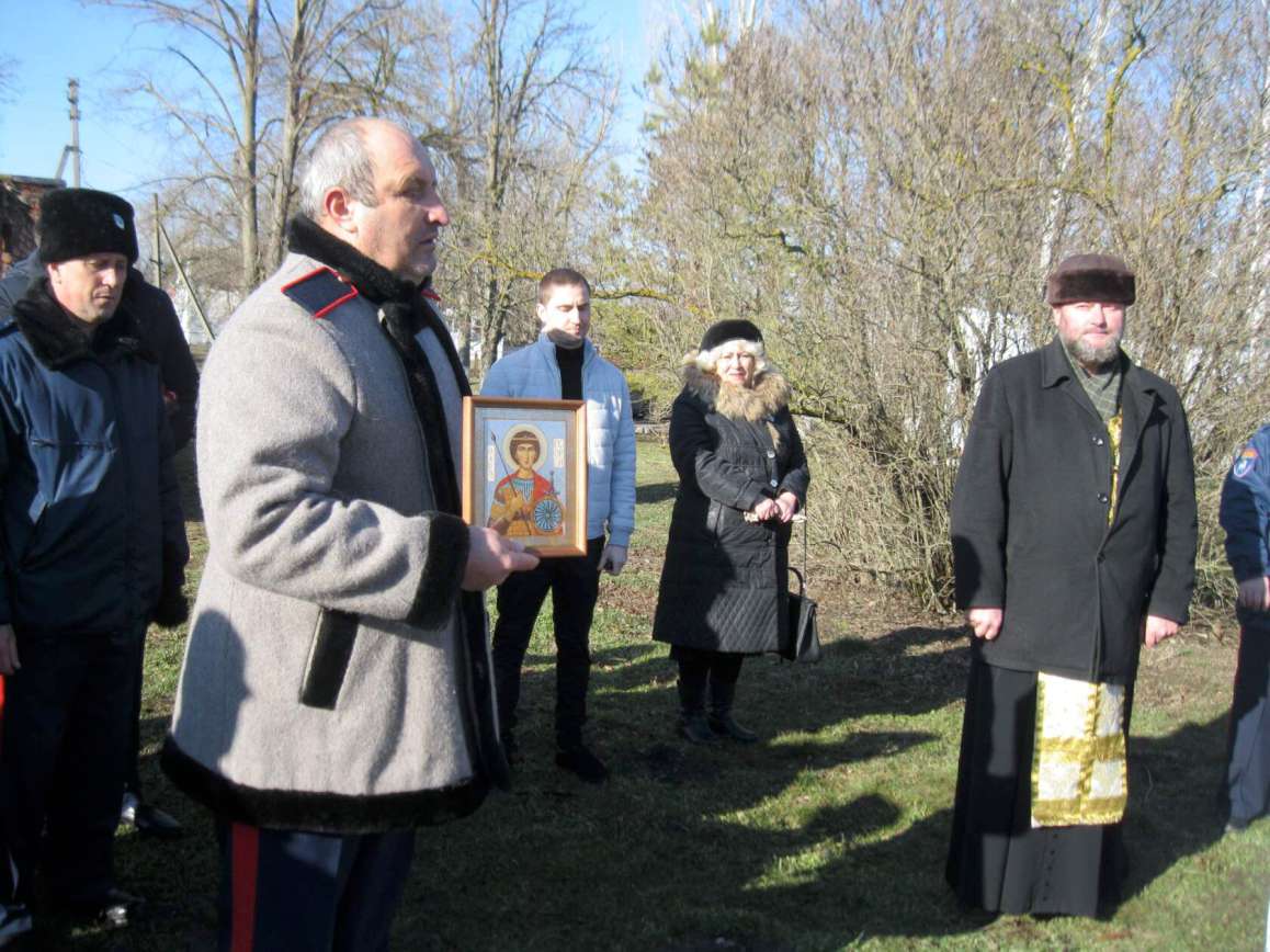 На протяжении многих лет наши жители мечтали: а почему бы в нашем хуторе не построить Часовню, ведь русский человек испокон века был православным человеком. В каждой маленькой русской деревеньке, в каждом хуторке обязательно строилась церковь, не говоря уже о крупных городах. Казаки, осваивающие сибирские земли, возводили остроги, и одним из первых и главных зданий в нем была обязательно церковь. Вера наших предков помогала вместе проходить через труднейшие испытания, преодолевать невзгоды и побеждать. Такой опыт нравственного воспитания укреплял душу и дух русского человека. Почему посвящаем Святому великомученику Георгию Победоносцу? В народной традиции, Георгий считается покровителем воинов, земледельцев (имя Георгий происходит от греч. — земледелец) и скотоводов. А казаки, потомки которых живут и в нашем хуторе, всегда были воинами в период невзгод и земледельцами – в мирный период. Чин освящения провел Настоятель православного Храма Святителя Николая Чудотворца в станице Егорлыкской - протоиерей Георгий . На торжественном мероприятии присутствовали жители Войновского сельского поселения, депутаты собрания депутатов, заместитель Главы администрации Егорлыкского района Н.Ю. Афанасьев, атаман Егорлыкского казачьего юрта Д.Н. Санин, который подарил первую икону для Часовни. Иконку принял атаман Войновского юрта Э.А. Васильченко. Для всех участников праздника ансамбль «Казачья воля» исполнил несколько зажигательных казачьих песен. Часовню предполагается построить к торжественным мероприятиям, посвященным 160 – му Юбилею хутора Войнов. Первое пожертвование для будущего строительства в сумме 50 тыс.руб. сделал директор ООО «Мирный» Романов Александр Георгиевич. Еще 18 тысяч пожертвовали жители и гости.