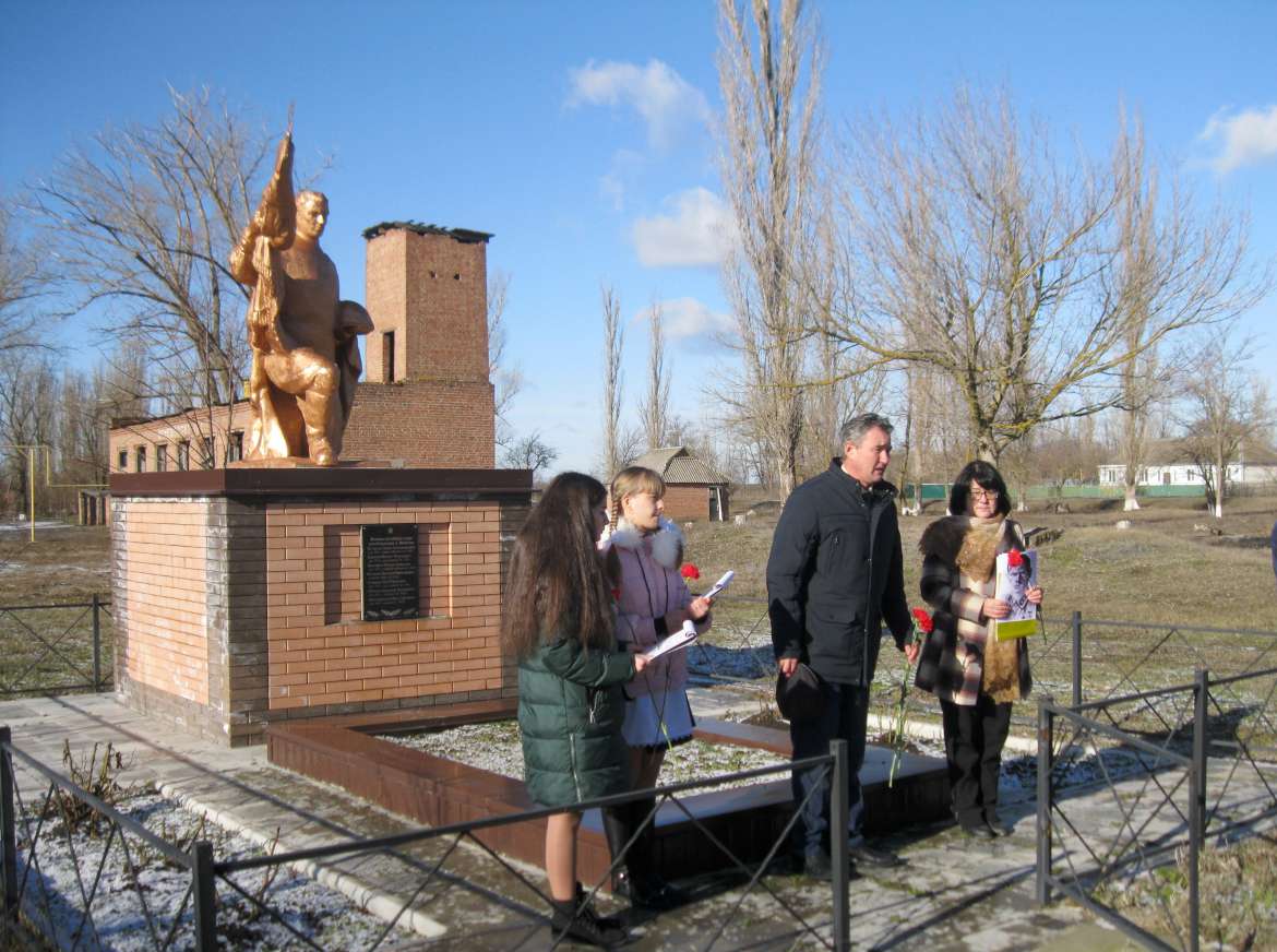 Всем кто ушел в бессмертие и победилОпубликовано: 25-01-2020 19:30Для жителей нашего Войновского сельского поселения 24 января не просто дата в календаре – это значимая дата в истории Малой Родины. 77 лет назад советские войска, сметая сопротивление врага, освободили хутора Войновского оселения от фашистской оккупации. В этот торжественный и памятный день в трех хуторах (в хуторах Войнов и Украинский у Братской могилы, в х. Прощальный – у Мемориала Памяти) состоялись торжественные митинги, посвященные 77-й годовщине освобождения поселения от немецко-фашистских захватчиков. Отдать дань уважения подвигу героев Великой Отечественной войны собрались учащиеся двух школ, которые возложили Гирлянды Славы, жители хуторов. В числе почётных гостей на праздниках присутствовали депутаты Войновского сельского поселения. На торжественном мероприятии выступили: Калашников Александр Александрович – житель хутора Прощальный, который рассказал о своих детских воспоминаниях о Великой войне, Кузнецов Николай Петрович – прочел стихи собственного сочинения о войне, о памяти, Кучеров Виктор Павлович – житель хутора Украинский, рассказал о поколении, которое вынесли на своих плечах все тяготы войны и послевоенных лет и отвоевали для нас мирную жизнь. Глава администрации поселения Владимир Викторович Гавриленко в своем выступлении подчеркнул, что мы помним и чтим бессмертные подвиги бойцов, погибших за освобождение наших хуторов и наша главная задача сохранить уважение к историческому прошлому своего народа, а задача нынешнего молодого поколения сохранить память о героизме советского народа. Память о воинах, погибших за освобождение войновской земли от немецко-фашистских захватчиков, павших в годы Великой Отечественной войны, почтили минутой молчания. Участники митинга возложили цветы к Памятникам. Вечная память воинам, погибшим в годы Великой Отечественной войны за освобождение нашего поселения. А.Н. Ефимова, директор Войновского СДК